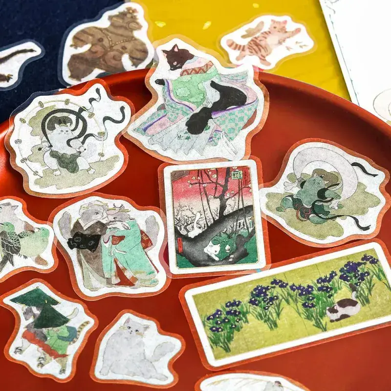 The beautiful, glittering, and sometimes delicate Japanese style and the adorable cat are depicted in the style of Japanese art and adorable cats are depicted in the style of Japanese art.