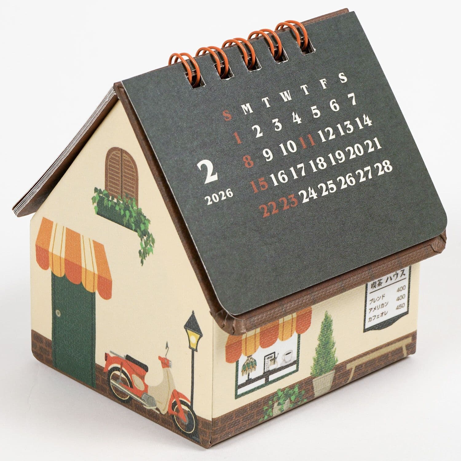 The roof is a calendar. When you open the roof, you will find a small accessory box, where you can store masking tape, paper clips, etc. It is a convenient and cute desk calendar.