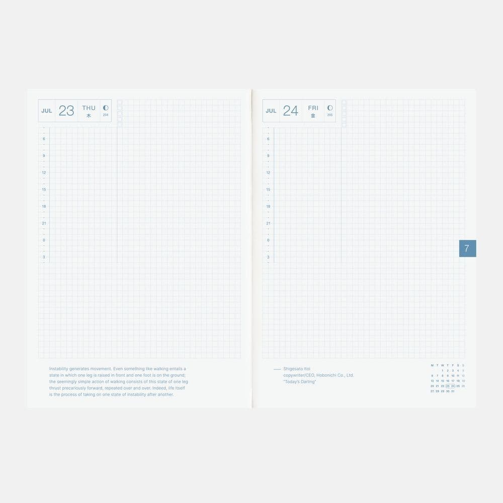 This is the English version of the A5 size Hobonichi Techo Cousin with a page-per-day format.
