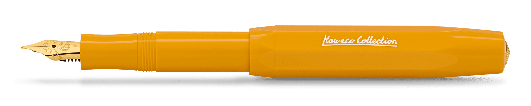 The Kaweco Collection Honey fountain pen, made of high-quality plastic, combines the warm yellow colour of sunflower honey with the fine golden accents that give the fountain pen a classy touch