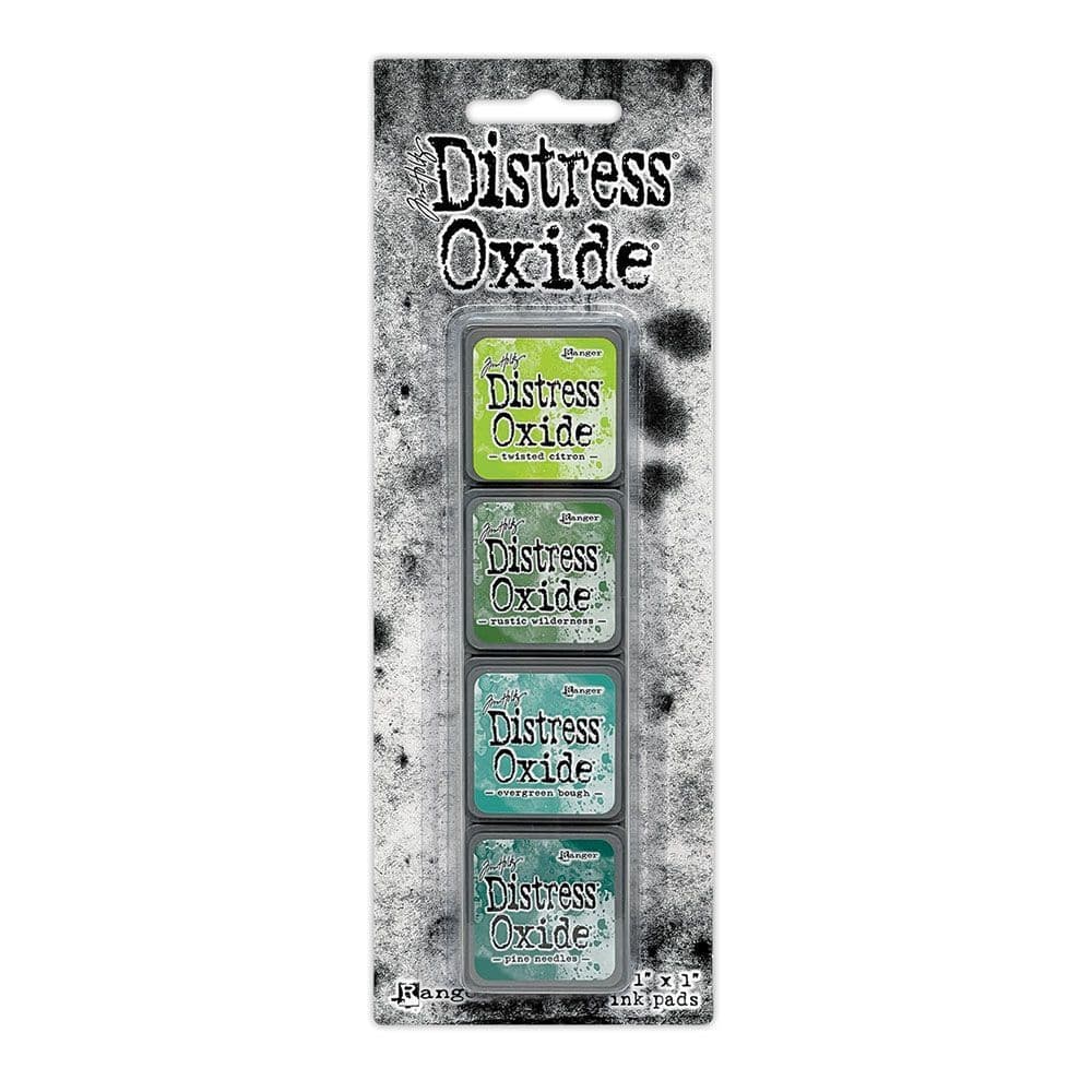 Tim Holtz® Distress Mini Oxide Ink Pads are a collection of 1” x 1” cubes featuring water-reactive dye & pigment ink fusion that creates an oxidized effect when sprayed with water.